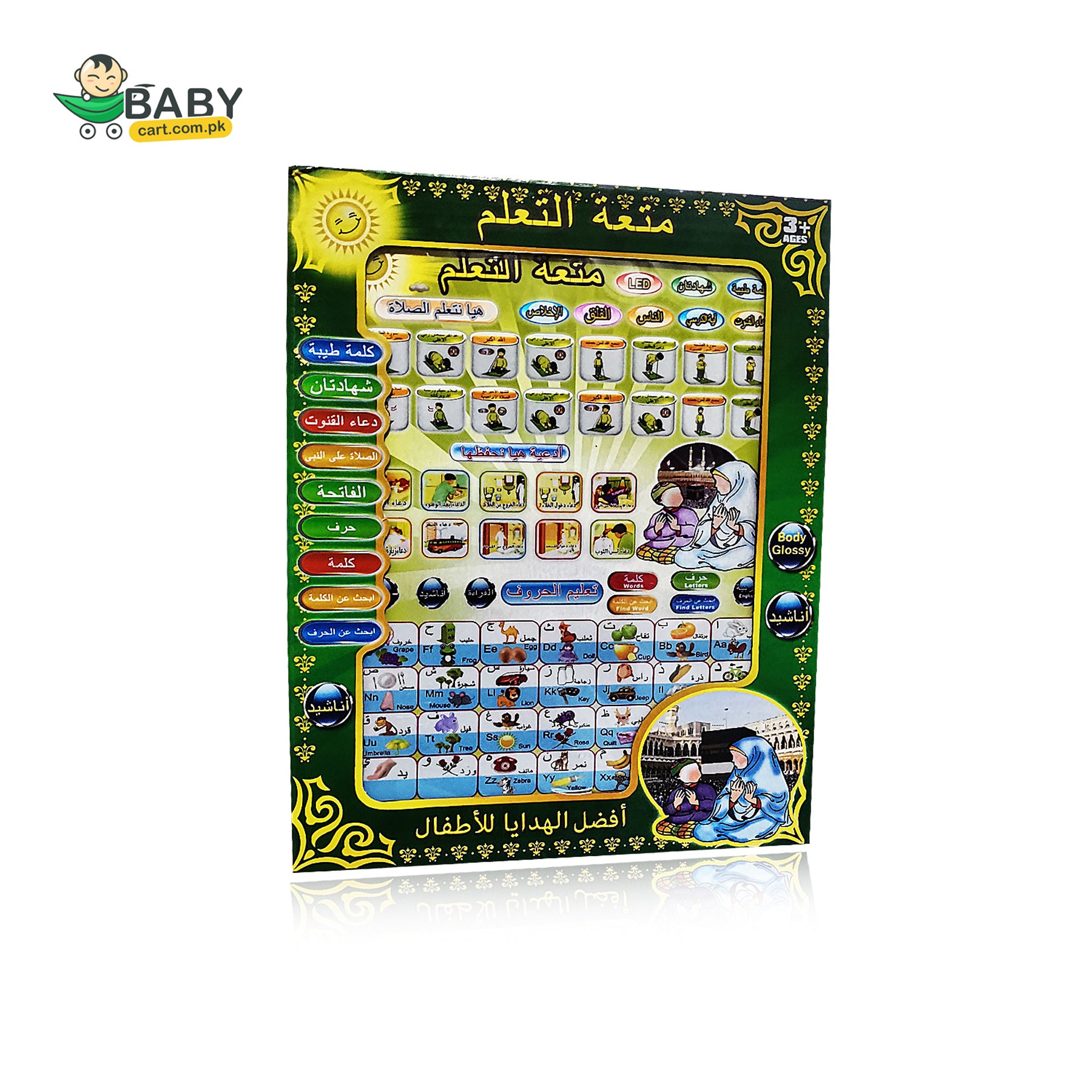The Islamic tablet is an innovative way to engage your children in Islamic education. Its unique design attracts children, and built-in LED lights develop their interest in learning the basics of Islam. Islamic tablet increases kids’ awareness of religious knowledge. It has many Islamic Duas for daily recitation.